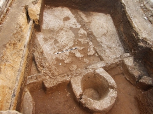 Половина споруди вимощена мозаїкою, завдання якої - не дати рідині проникнути в ґрунт. Сік, який тиснули на мозаїчних майданчиках, потім надходив у потиньковані резервуари. Археологи вважають, що будова була частиною великого виноробного комплексу.