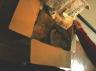 Бідон був заповнений водою. Мармус привіз документи додому. Просушив і частково посортував. Частину, яка була зіпсута, викинув.