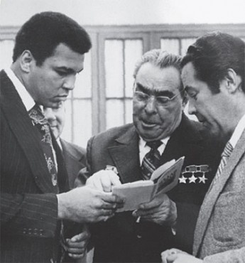"Я не знаю, чому Мохамед Алі зібрався в Радянський Союз, але коли він захотів зустрітися з Брежнєвим, Леонід Ілліч із задоволенням погодився. Сама бесіда у мене в пам'яті не відобразилася. Але, йдучи, Мохамед озирнувся, звернувся до мене і сказав: "А можна я його обійму, Брежнєва"? Я перевів Брежнєву, і той відповів: "Із задоволенням". Відомо, що Брежнєв взагалі любив цілуватися".