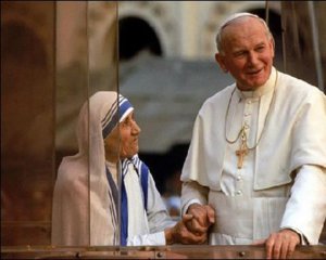 Папа Римський Іван Павло II зустрівся в Калькутті з матір'ю Терезою 3 лютого 1986 року. Вона в Індії заснувала жіночу чернечу конгрегацію "Сестри Місіонерки Любові", опікувалася хворими та нужденними людьми у всьому світі.