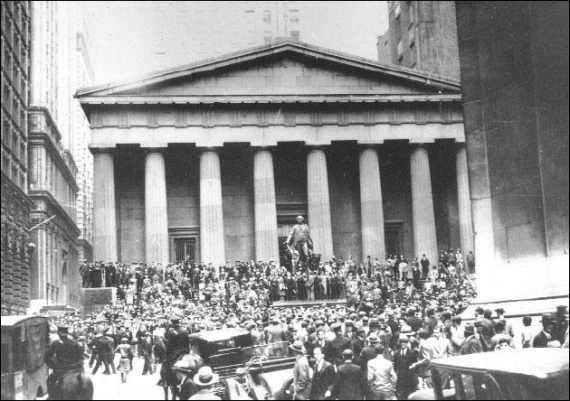 У понеділок 21 жовтня 1929-го пролунав перший сигнал кризи — на Нью-йоркській фондовій біржі впали акції. Адже за біржовими цінами вартість усіх акцій становила $87 млрд, у той час як готівкових грошей в обігу було лише $73 млрд. Та більшість американців і далі вкладали гроші в акції. І через три дні, 24 жовтня, уже за годину після початку торгів, курс акцій почав стрімголов обвалюватися. Біржу охопила паніка. Усі прагнули продати свої пакети.