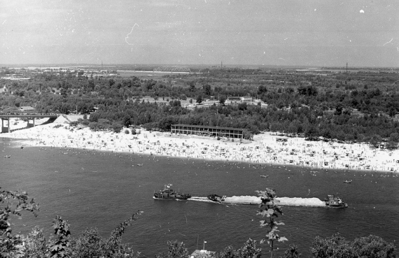 "Після війни географія київських пляжів змінилася не дуже значно, але їхня якість стала набагато кращою. По-перше, Труханів острів і колишня Передмістна слобідка (Гідропарк), втративши статус житлових селищ, перетворилися на паркову зону, по-друге, з часом були побудовані мости, які полегшили доступ до їхніх пляжів, по-третє, облаштували пляжі на багатьох київських озерах і побудували обвідний канал на Русанівці, вздовж якого теж можна було купатися і загоряти. Так тривало до 1986 року. Після Чорнобильської катастрофи кілька років київські пляжі були напівпорожніми", - сказано в коментарі до фото.