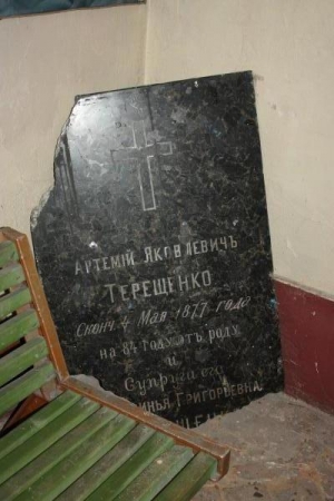 Зараз у нижньому храмі за кошт нащадків Терещенків встановлені 5 нових могильних плит. А справжню плиту із склепу Артема Терещенка вдалося знайти у сусідському подвір'ї, об неї кажуть, витирали ноги після городу.