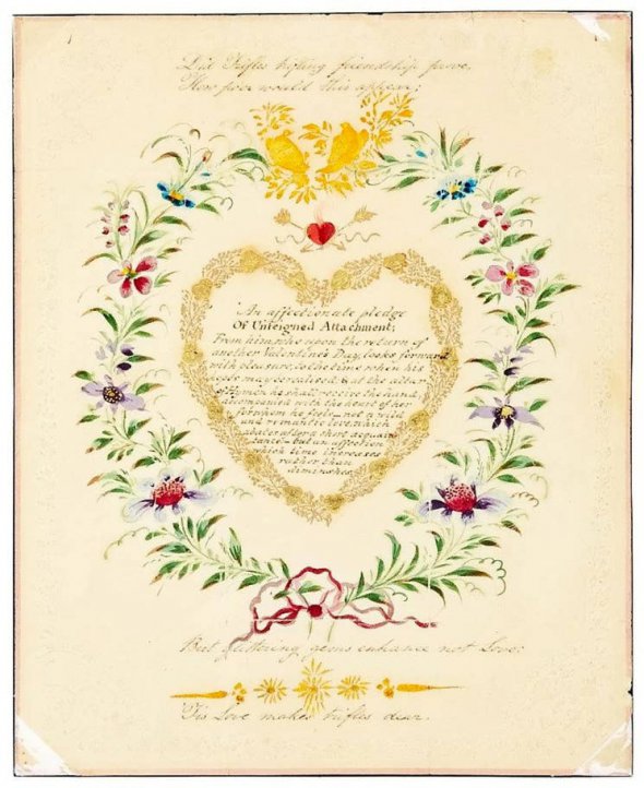 Листа, розписаного вручну сердечками та квітами, відправили поштою понад 200 років тому, 14 лютого 1818 року. Адресували його міс Л. Шейф під заголовком "Ласкава обіцянка непідтвердженої прихильності", пише Intependent.