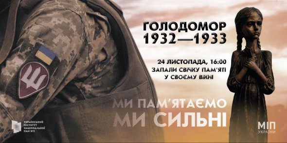 Голова Українського інституту національної пам'яті Володимир В'ятрович повідомив, що національні пам'ятні заходи до 85-тих роковин геноциду проходять під гаслом "Ми пам'ятаємо! Ми сильні". Слоганом міжнародної кампанії є слова "Україна пам'ятає - світ визнає!", передає Український інститут національної пам'яті.