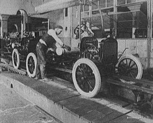 7 жовтня 1913 року вперше у світі на заводі Генрі Форда в Детройті виробничий процес збирання автомобілів почав виконуватись за новою технологічною схемою - на конвеєрі. Це дало змогу скоротити тривалість процесу збирання автомобіля марки "Model T" в двічі (з 12,5 годин до шести). Протягом року цей час скоротився до 93 хвилин.