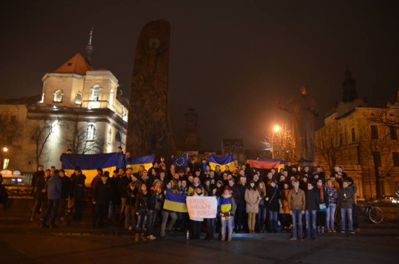 Пізно ввечері 21 листопада на Майдані Незалежності в Києві розпочався мітинг на знак протесту проти рішення уряду України заморозити переговори з Євросоюзом щодо угоди про асоціацію.