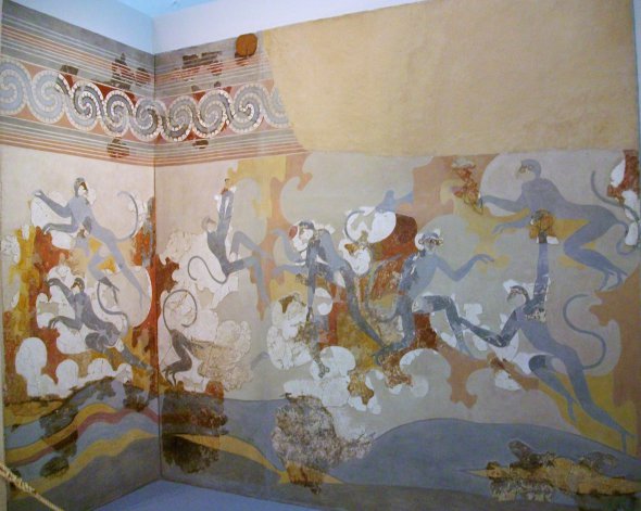 На фресках зображені мавпи, яких в острівній Греції не було. Спочатку їх сприйняли за єгипетських оливкових бабуїнів, оскільки мінойці мали контакти з давнім Єгиптом. Натомість, новітні дослідження приматологів довели, що на малюнках зображений сірий лангур. На це вказує своєрідне хутро та хвіст у S-подібній формі, повідомляє New Scientist.