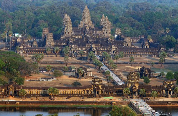 Ангкор-Ват - найбільша культова споруда та одна з найважливіших археологічних пам'яток світу. Присвячена богу Вішну, якого шанують у Камбоджі. Ангкор-Ват будувався зверху вниз. Спочатку насипали гору землі з виритого навколо території храму величезного рову. Потім за допомогою слонів піднімали на вершину кам'яні блоки, а землю зривали.