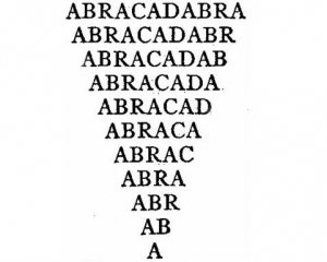 Слово "абракадабра" використовували, як талісман. На папері це магічне слово зображують у вигляді трикутника. Починають з літери А і додають по одній букві. Такі талісмани згадуються з 16 ст.