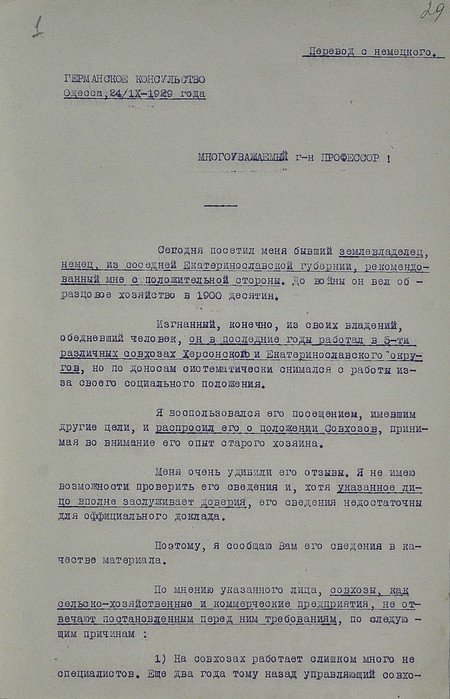 "Тепер вже встановлено, що катастрофа голоду сягнула всю Україну, і що винятками є райони, де ще наявний хліб. Судячи з наявних достовірних повідомлень, в українських селах померло від голоду 80% населення", — писав німецький консул у листі до Міністерства закордонних справ Німеччини у 1933 році.
