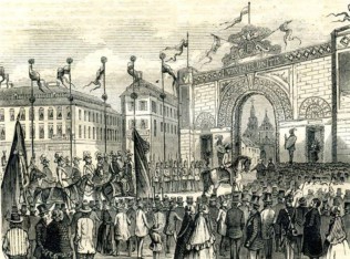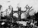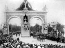 Цікаво, що колія електричного трамваю, який саме тоді розпочав свою роботу, проходила під тріумфальною аркою. Хоча дана арка була масивною кам'яною конструкцією, це не завдали їй бути лиш тимчасовим спорудження, котре як і інші попередниці, безслідно зникло, закарбувавшись лишень на давніх світлинах.