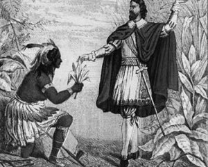 "Нас зустріло безліч майже оголених людей, які йшли із своїх поселень з палаючими головешками в руках і травою, дим якої вони "пили". Інші несли одну велику сигару і при кожній зупинці запалювали її, після чого кожен робив з неї три-чотири затяжки, випускаючи дим через ніздрі. Коли всі таким чином освіжались, вирушали в путь знову", - описує процес куріння тютюну 41-річний Христофор Колумб.