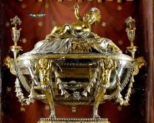 Вони розташовані в нижній вівтар храму, в релiкварiї розміром два на півтора метра, у золотому саркофазi зi скляними вiкнами, повідомляє "Експрес".