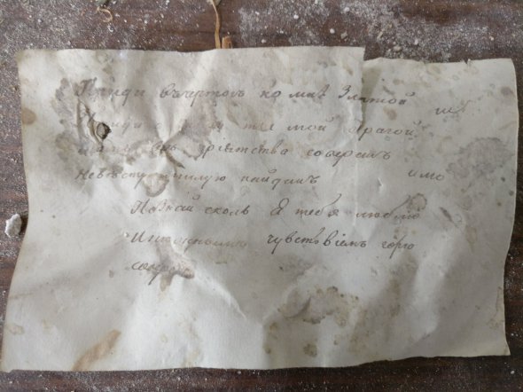 "Є також запис іншим почерком, який ставить крапку на любовних відносинах. Текст приблизно такий: "Священнический чин монаший (...) принят (?) церковный дапаможет (?) Господь Бог воцарствии (?) своем (...), - пише Мелешевич. - "Можливо, хтось хотів розіграти того, кому записка писалась. Він, бідолага, пішов на зустріч, а потім зрозумів, що його розіграли і під впливом цього подався у монахи. Ось така сумна історія про зруйноване кохання".