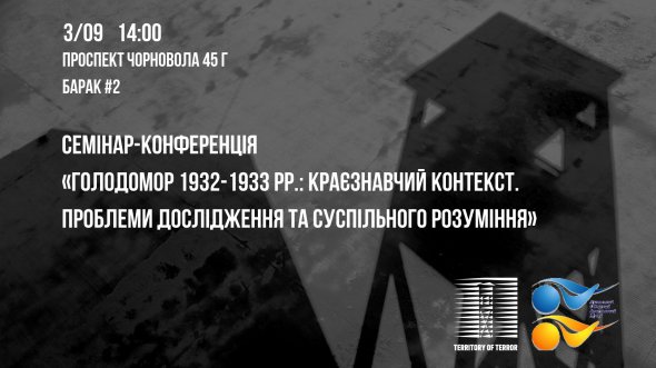 3 вересня у Меморіальному музеї тоталітарних режимів "Територія терору" у Львові відбудеться семінар-конференція "Голодомор 1932-1933-х: краєзнавчий контекст. Проблеми дослідження та суспільного розуміння".