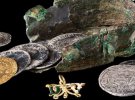 Всього з ушкодженої скрині дістали 34 монети - 10 золотих і 24 срібних. Корозія об'єднала їх у цільний злиток.