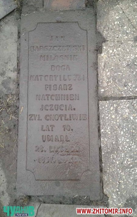 Мешканець Чуднова Житомирської області викопав на подвір'ї стару чавунну плиту. Через 17 років виявилося, що вона могла бути налгробком відомого польського та білоруського письменника Яна Барщевського.