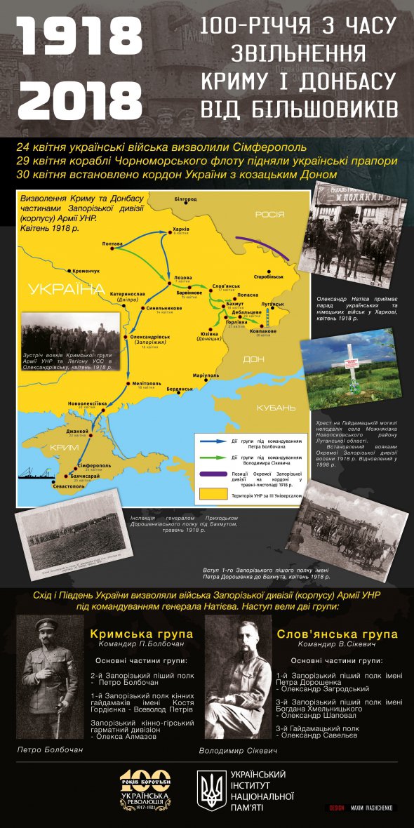 У грудні 1917-го "почервонів" Чорноморський флот, який досі здіймав синьо-жовті стяги. Невдовзі українські прапори повернулися до Криму. У квітні 1918 року їх принесли вояки Кримської групи Армії УНР під командуванням Петра Болбочана, повідомляє Український інститут національної пам'яті.