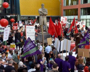 Пам'ятник німецькому філософу-соціалісту Фрідріху Енгельсу, який стояв в одному з колгоспів на Полтавщині встановили біля театру на Манчестері, Велика Британія.
