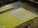 "Наш папір називався черпаним, бо його зачерпували з рідини. Дві дерев'яні рамки клали одну на одну і закріплювали. Опускали їх у "паперову" суміш і зачерпували так, аби майбутній папір між ними затримався і осів. Від проміжку між рамками залежала його товщина. На одній із рамок - стилізоване зображенні Києво-Печерської Лаври. Це служило водяним знаком".