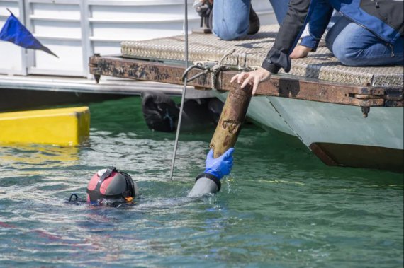 Археологи вже шукали поселення, але їм заважав товстий шар бруду на дні. Під час роботи на трубопроводі виявили близько 30 доісторичних дерев'яних паль і п'ять керамічних посудин.