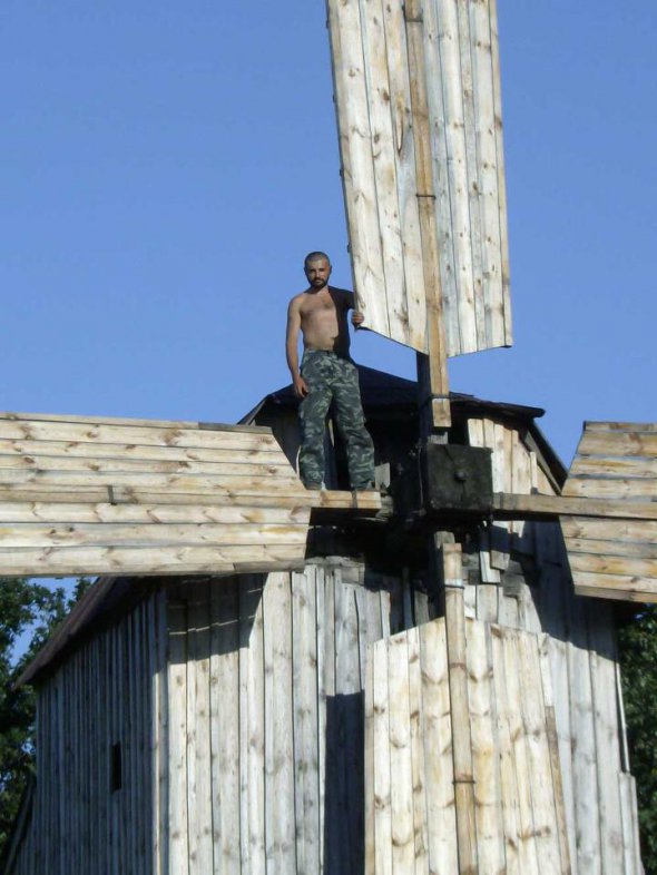 У моєму рідному селі Івківці Чигиринського району на Черкащині стояв вітряк, який розвалювався. У 2007 році був лише перекошений каркас і дах. Я захотів його відновити. Отримав гранд від громадської організації "Молода Черкащина" – 4 тисячі гривень. Вистачило на дошки. Ще трохи назбирав у благодійників. Домовився із селянами відновити вітряк. Зробили стіни і дах. Найскладніше було із механізмом, бо толком він ніде не описаний. Знайшов тільки згадку, що у селі було 27 вітряків. Ми рятували останнього з них. Шукав запчастини, а мені кажуть: "Тут якісь під тином лежали, але ми на метал здали". Обшукав всю область і марно.