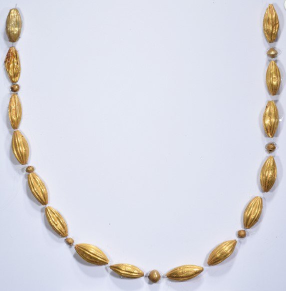 У похованні знайшли мідне дзеркало із ручкою зі слонової кістки, мідні шпильки та унікальне золоте намисто з 15 оливкових намистин, повідомляє Greek Reporter.