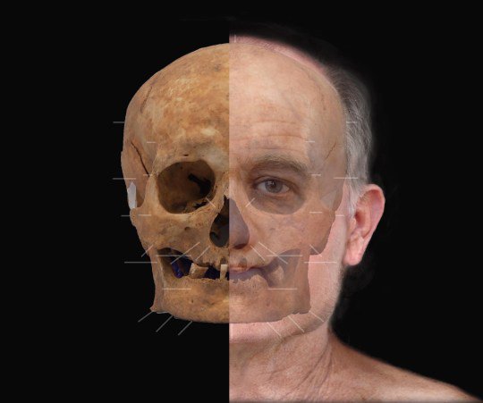 Антропологи відтворили обличчя чоловіка, який жив 600 років тому. Рештки виявили під час земляних робіт коло галереї мистецтв Абердіну в Шотландії.