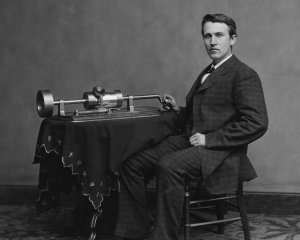 За рік до цього Томас Едісон у своїй лабораторії в Менло-Парку (штат Нью-Джерсі) працював над пристроєм, який міг б записувати текстові повідомлення у вигляді поглиблень на паперовій стрічці. Дослідження цього питання навело Едісона на думку, що подібним чином можна записувати і телефонну розмову. Він експериментував з мембраною, оснащеною невеликим пресом, закріпленим над рухомим папером, вкритим парафіном. Вібрації, створювані голосом, залишали позначки на папері. Пізніше Едісон замінив папір металевим циліндром, прес - голкою, яка залишала канавки різної глибини на циліндрі в залежності від сили звукових вібрацій. Так винайшов фонограф.