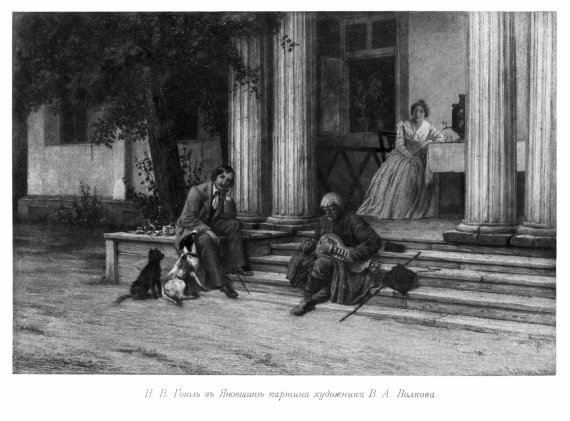 "Дорога на Миргород від Лубен йде степами і широкої рівниною. Немає краю горизонту й куди не кинь оком поля і поля. Лише на півдороги зустрінеться самотня хатинка з колодязем та в 12 верстах від Миргорода буде село Кібинці. Тут починається область Гоголівських спогадів. Посеред села на пагорбі навпроти церкви стоїть і тепер ще той будинок де давалися малоросійської спектаклі і гралися п'єси, створені батьком Гоголя Василем Опанасовичем. Будинок має тип панських будівель того часу, і, хоч сильно перероблений, але виглядає ще велично. Саме село таке чистеньке. Білі хати з підведеною знизу стін глиною жовтими смугами, так добре обмазані.