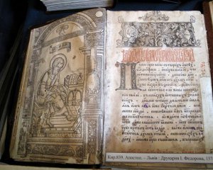 15 лютого 1574-го у Львові Іван Федоров видав 1-шу друковану книжку на українських землях - "Апостол". Вона містила традиційний церковнослов'янський переклад "Діянь і послань апостольських".