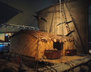 Норвезький дослідник Тур Геєрдал із п'ятьма товаришами на бальзовому плоті 28 квітня 1947 року відплив від західного узбережжя Південної Америки (Перу) до Таїті. Пліт отримав ім'я бога інка Кон-Тікі.