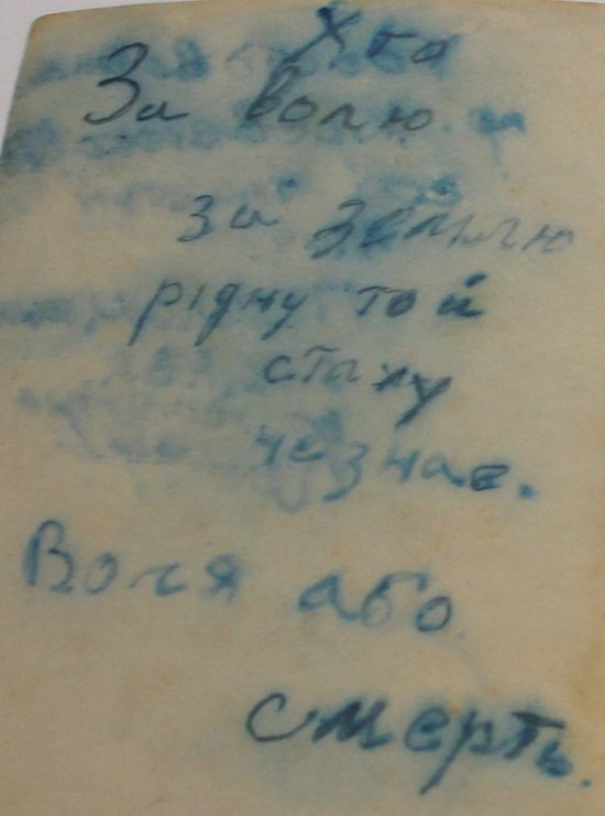 Серед документів є посвідка на прізвище Кревенко. На папері вказано, що пред'явник цього – пластун з кличкою Псаломщик. На документі збереглося гасло: "Хто за волю і за землю рідну – той страху не знає. Воля або смерть!"