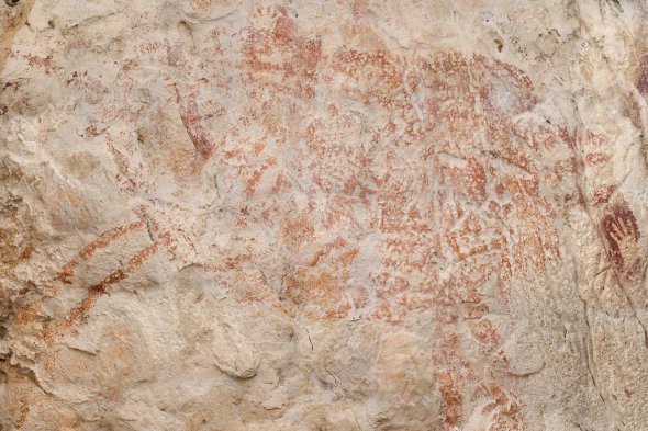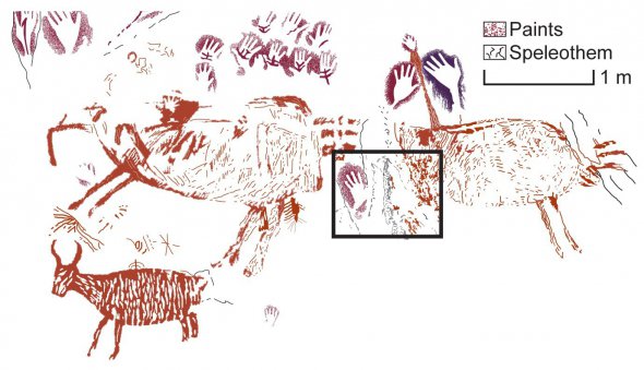Біля малюнку бика вчені також знайшли трафаретні зображення рук.