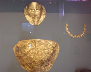 В Мікенах німецький археолог Генріх Шліман 27 листопада 1876 року знайшов останню з п'яти золотих поховальних масок середини 2 тисячоліття до н. е., відому як "Маска Агамемнона". Зображений на масці володар правив Мікенами у XVI ст. до н. е. - за 400 років до описаних в "Іліаді" подій.