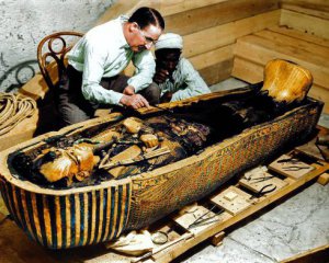 Тутанхамон царював у 1332–1323 роках до н. е. На місці його поховання звели склеп Рамзеса VI. Серед 28 єгипетських фараонів – лише його гробниця не пошкоджена. Археологи понад сім тижнів виносили скарби тільки з передньої та бокової кімнат чотирикімнатної гробниці. У "золотій залі" був кам'яний саркофаг померлого фараона. У золотій шафі-капличці в посудинах зберігалося серце, мозок і нутрощі покійника, вийняті, коли труп бальзамували.