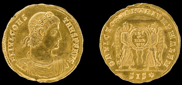 Історики встановили, що це пам'ятна монета імператора Констанса, наймолодшого сина Костянтина I. Монету викарбували 342-го у Сісції, тепер Сісак, Хорватія, у римській провінції Панонія Савія. Монетний двір у Сісції відкрили ще 262-го як імперський монетний двір. Усі монети, викарбувані там, носять знак SIS. Монети такого типу не використовувалась у торгівлі. Їх відливали з чистого золота, щоб відзначити сходження нового імператора, велику перемогу або видатні для Риму роки. Право носити такі монети при собі мала невелика група прихильників імператора. Вручали на спеціальній церемонії, пише The History Blog.
