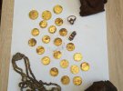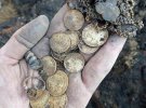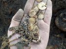 "Думав, що то радянські п'ятаки. Вирішив подивитися. Це не радянська копійка. Там був профіль Миколи II. Я глянув неподалік - знову монета, 2-га, 3-тя, потім знайшов від зубів золоту корону - 4 зуби, ланцюжок, кільце, ще одну монету. Поруч були шматки тканини або шкіри. Скарб, напевно, був загорнутий. Я зрозумів, що все серйозно, і вирішив зателефонувати археологу з Академії наук Сергію Дзерновичу, який проводить археологічний нагляд. Зупинив роботу будівельників, оскільки з іншого боку земля вже була у вантажівці", - розповів Корольов.