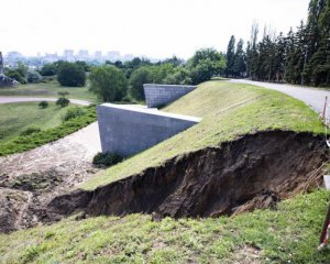 В адміністрації міста кажуть, що дорога, яка йде по верхній частині меморіалу, не витримала напору води. Частину схилу між мармуровими пілонами змило, передає УНІАН.