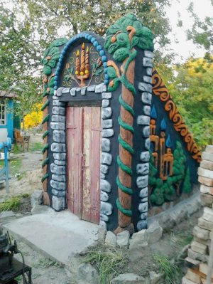 — На стінах льоху виліпила "каміння". На кутах — обмотані ліанами стовбури дерев. Оздоблювала до п'ятої вечора. Тоді йшла працювати в клуб. Контури вирізала вночі під лампу. Розфарбувала. Зараз дивлюся, що могла зробити краще.