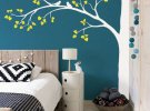 Для створення на стіні композиції, слід намалювати на ватмані трафарет за формою пір'я. Фарбою темного відтінку нанести малюнок на світлу стіну.