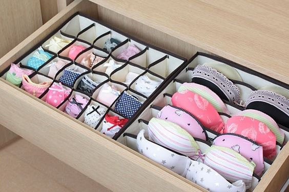 Шкарпетки, нижню білизну і аксесуари зберігати у висувних ящиках і спеціальних лотках з осередками.