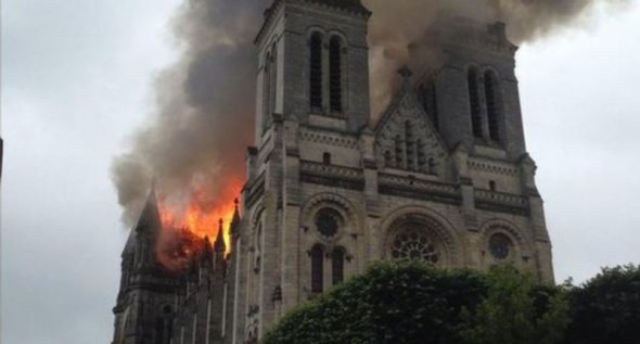 9. Базиліка Сен-Донатьєн у французькому місті Нант. Була споруджена в 1889 році. Пожежа сталася 15 червня 2015 під час ремонту покрівлі. Причиною стало необережне поводження з газовими пальниками, які використовували в ході ремонтних робіт. У результаті серйозної шкоди зазнала сама покрівля, перекриття й інтер'єри базиліки. Остаточно розібратися з наслідками пожежі й відкрити храм для відвідування планують цього року.