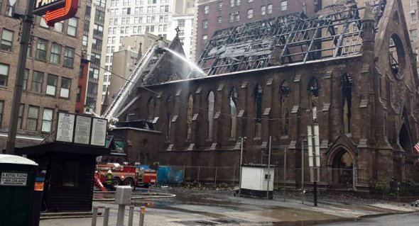 3. Собор Святого Іоана Хрестителя в Нью-Йорку. Є найбільшим у світі англіканським храмом. Збудований був у 1892 році. Полум'ям його охопило 18 грудня 2001 року. У результаті обвалився дах, обгоріли інтер'єри, сильно закоптився орган. Точна причина пожежі так і лишилася таємницею. Встановити вдалося лише місце займання. Ним виявилася одна з прибудов собору, у якій знаходилися церковні крамниці.