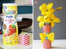 Щоб додати у буденні кімнати кольору, потрібно зробити яскраву вазу. Порожню пляшку з-під йогурту загорнути у кольоровий папір або скляну банку обклеїти грубою мотузкою.