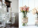 За допомогою мережива та яскравої стрічки, звичайна банка перетвориться у старовинну витончену вазу. Для любителів більш стриманого стилю підійде ваза рибака. Варто порожні скляні банки блакитного або зеленого кольору обернути сіткою.