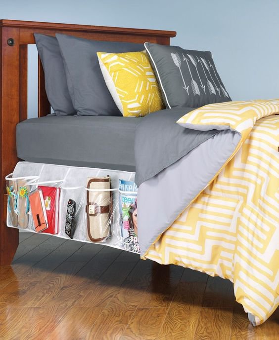 В нагоді стануть багатофункціональні меблі, ліжка з підйомним механізмом та ящики на колесах. Найкраще зберігати речі вертикально, так вони займають менше місця. Наприклад, спеції, за якими не потрібно заглядати в ящики або тягнутися до шафок, відразу видно, що є.