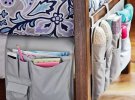 Простір спальні збільшиться завдяки підвісному столику поруч з ліжком. Замість тумбочки, можна використовувати підвісні секції, закріпивши їх за основу матраца за допомогою липучою стрічки.