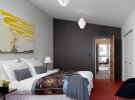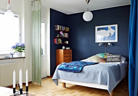 Щоб зробити кімнату візуально довшою краще пофарбувати протилежні стіни в більш світлі тони, ніж решта до них стіни.